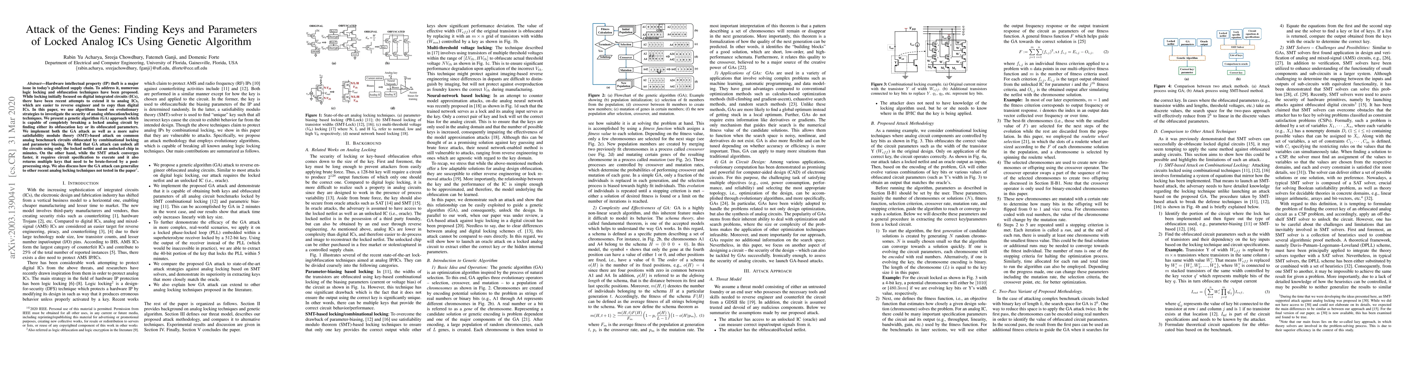 This paper explores the security of analog IC obfuscation techniques using genetic algorithms, demonstrating that a GA-based attack can efficiently break locked analog circuits by finding their obfuscation keys or parameters, outperforming a traditional SMT-based attack.