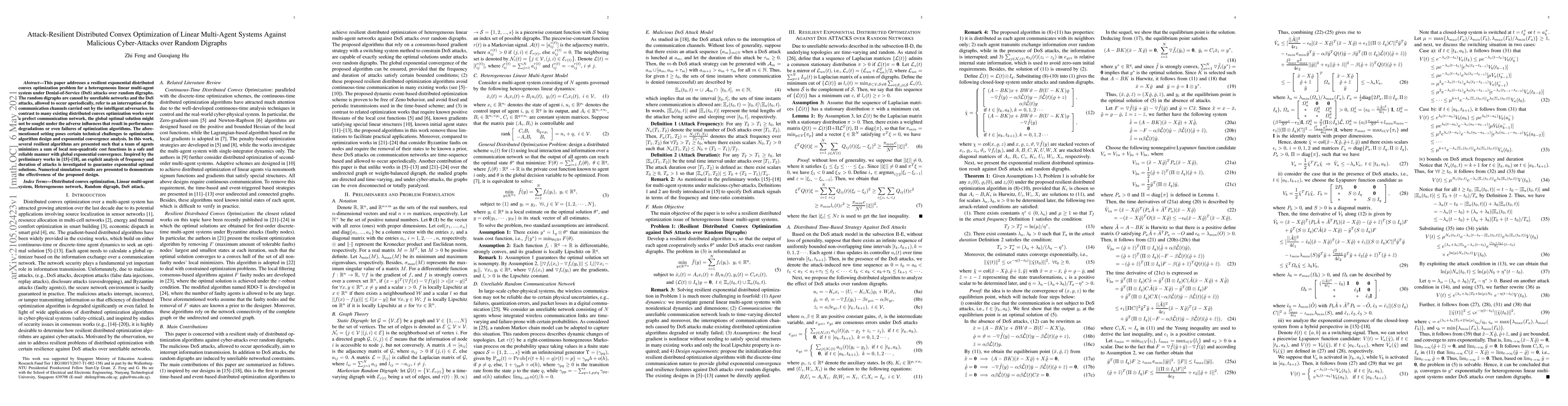 This paper addresses a resilient exponential distributed convex optimization problem for a heterogeneous linear multi-agent system under Denial-of-Service (DoS) attacks over random digraphs. The random digraphs are caused by unreliable networks and the DoS attacks, allowed to occur aperiodically, refer to an interruption of the communication channels carried out by the intelligent adversaries. In contrast to many existing distributed convex optimization works over a prefect communication network, the global optimal solution might not be sought under the adverse influences that result in performance degradations or even failures of optimization algorithms. The aforementioned setting poses certain technical challenges to optimization algorithm design and exponential convergence analysis. In this work, several resilient algorithms are presented such that a team of agents minimizes a sum of local non-quadratic cost functions in a safe and reliable manner with global exponential convergence. Inspired by the preliminary works in [15]-[18], an explicit analysis of frequency and duration of attacks is investigated to guarantee exponential optimal solutions. Numerical simulation results are presented to demonstrate the effectiveness of the proposed design.