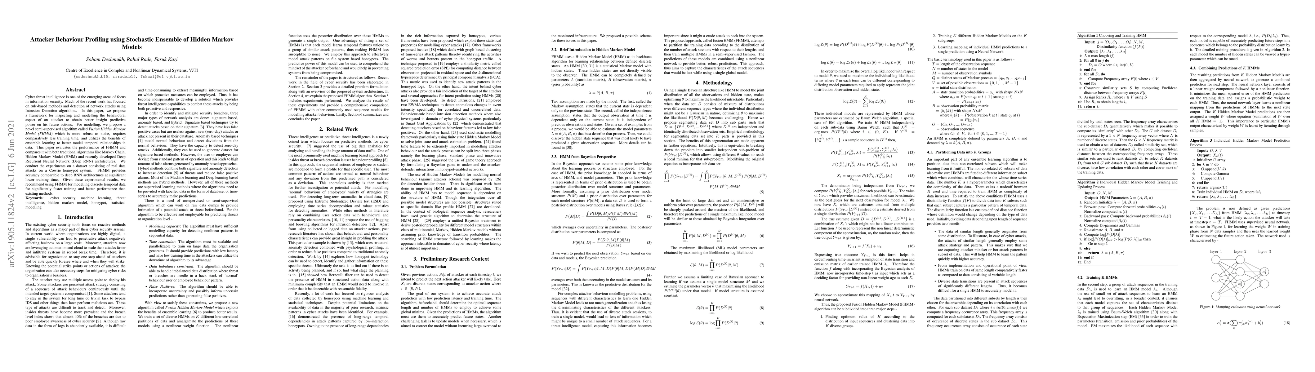 A new algorithm called Fusion Hidden Markov Model (FHMM) is proposed to analyze attacker behavior in cyber threats, offering comparable performance to deep neural networks but with faster training time.