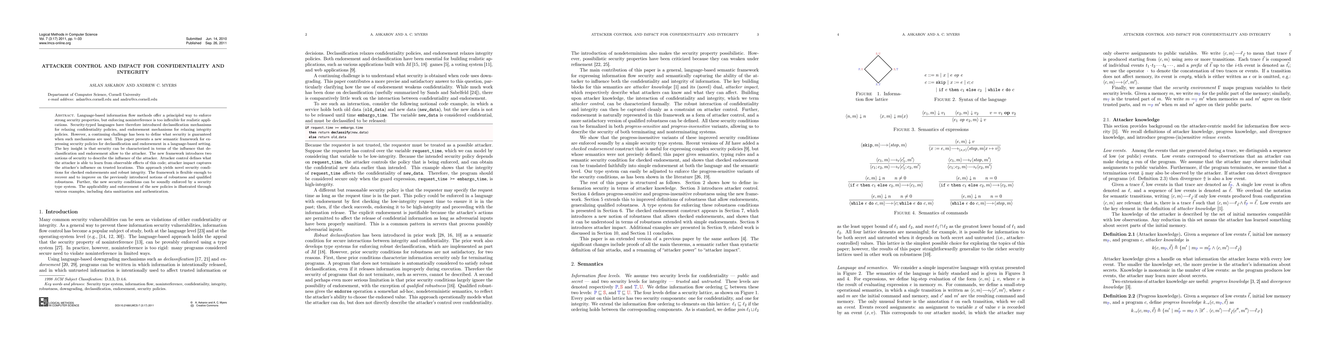 This paper introduces a new semantic framework to define security policies for declassification and endorsement in language-based systems, focusing on attacker control and impact. It characterizes security in terms of the attacker's observable learning and influence, proposing novel security conditions for checked endorsements and robust integrity, which can be enforced by a security type system.
