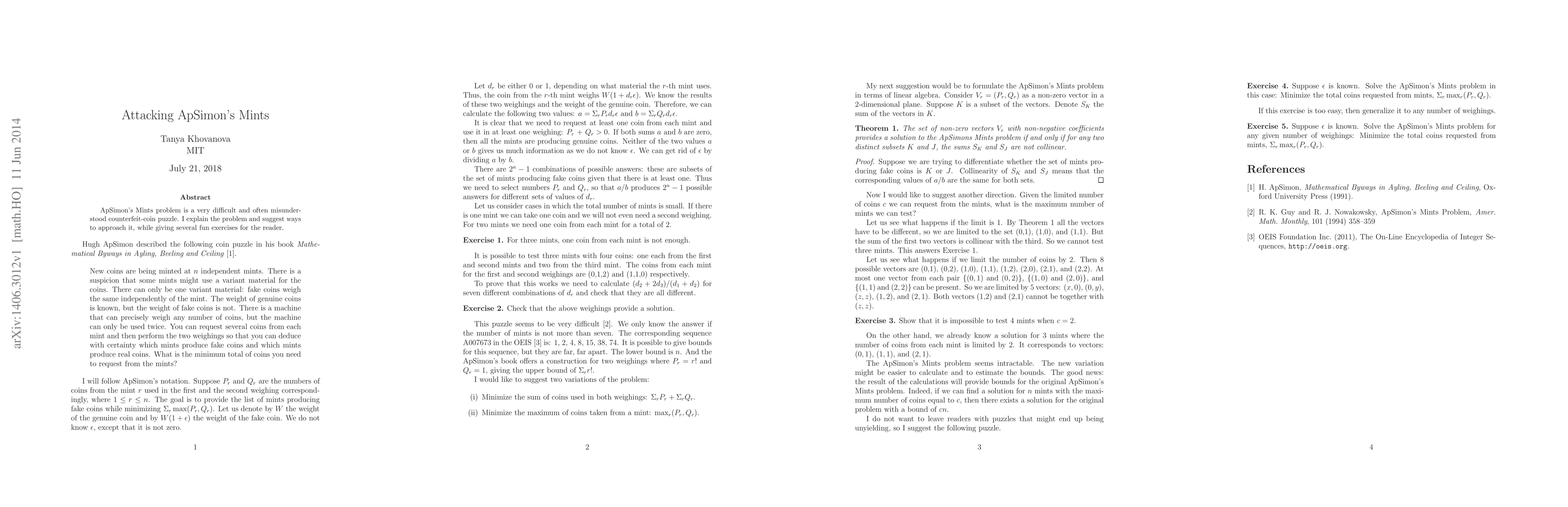 ApSimon's Mints problem is a very difficult and often misunderstood counterfeit-coin puzzle. I explain the problem and suggest ways to approach it, while giving several fun exercises for the reader.