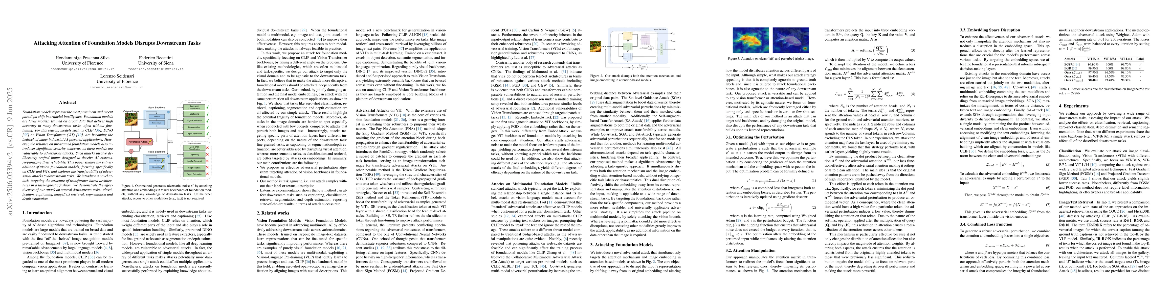 Researchers found that attacking foundation models, like CLIP and ViTs, can disrupt downstream tasks and introduce security concerns. A new attack method was developed to target the structure of transformer-based architectures, effective in several downstream tasks.