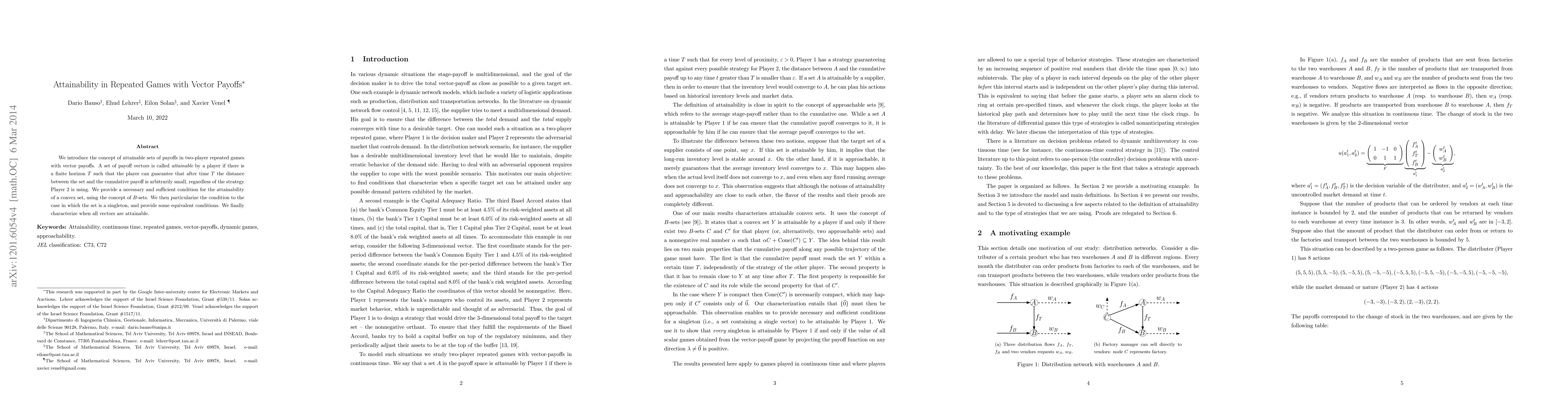 This paper explores the concept of attainable sets of payoff vectors in two-player repeated games, focusing on scenarios where a specific payoff vector can be ensured within a finite horizon regardless of the opponent's strategy. It characterizes the conditions under which a particular vector or any vector is attainable.