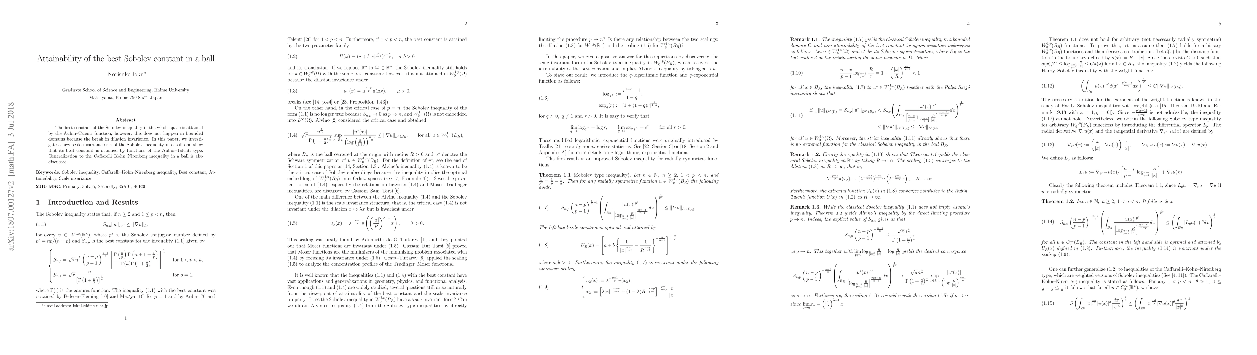 Researchers investigate a new scale-invariant form of the Sobolev inequality in a ball, showing that its best constant is attained by functions of the Aubin-Talenti type, similar to the whole space case.