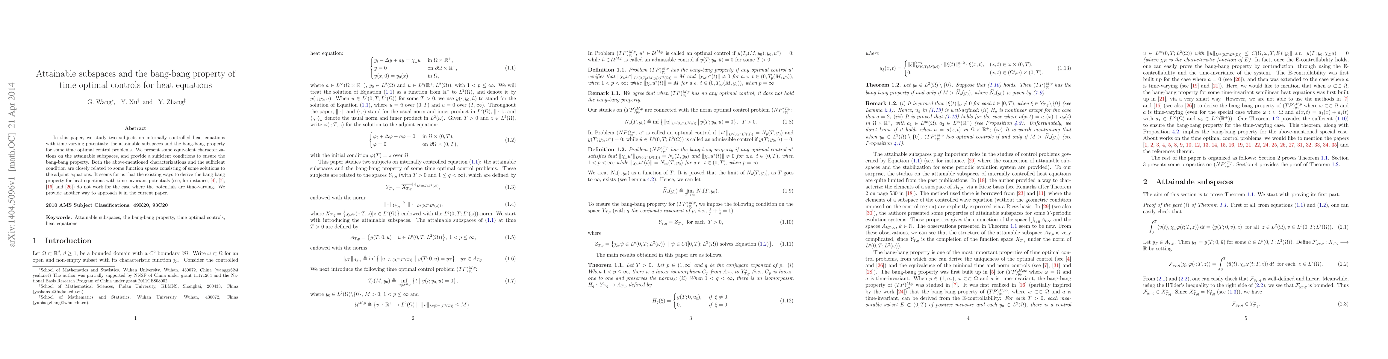 In this paper, we study two subjects on internally controlled heat equations with time varying potentials: the attainable subspaces and the bang-bang property for some time optimal control problems. We present some equivalent characterizations on the attainable subspaces, and provide a sufficient conditions to ensure the bang-bang property. Both the above-mentioned characterizations and the sufficient condition are closely related to some function spaces consisting of some solutions to the adjoint equations. It seems for us that the existing ways to derive the bang-bang property for heat equations with time-invariant potentials (see, for instance, [4],[7],[16],[26]) do not work for the case where the potentials are time-varying. We provide another way to approach it in the current paper.