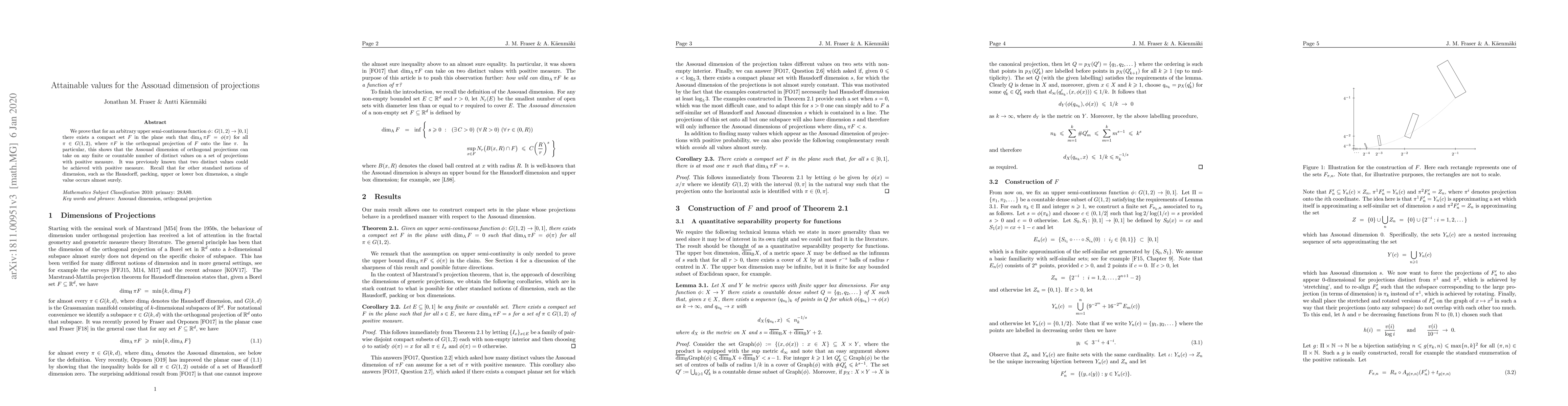 The paper shows that for any upper semi-continuous function, a compact set in the plane can achieve any finite or countable number of distinct Assouad dimensions for orthogonal projections.