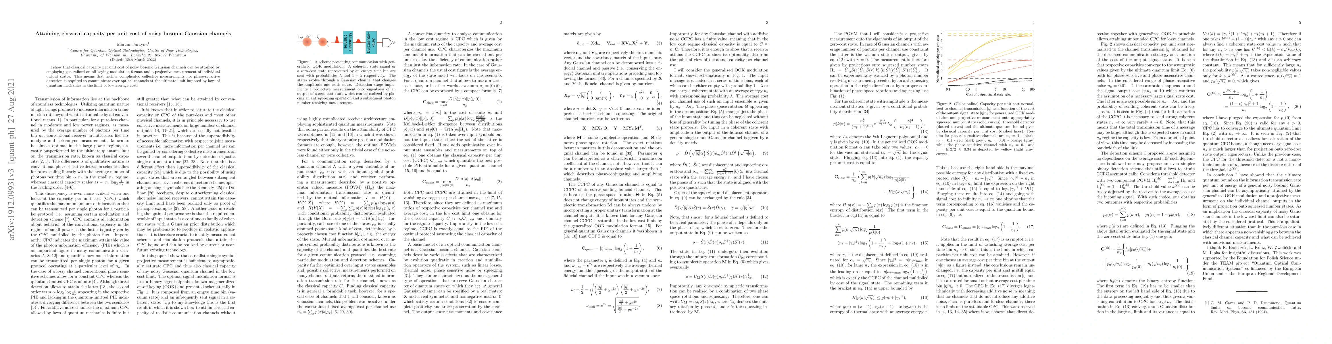 Summary: The paper demonstrates that the classical capacity per unit cost of noisy bosonic Gaussian channels can be achieved using generalized on-off keying modulation and projective measurement, eliminating the need for complex collective measurements or phase-sensitive detection, thus reaching the quantum mechanical limit at low average cost.