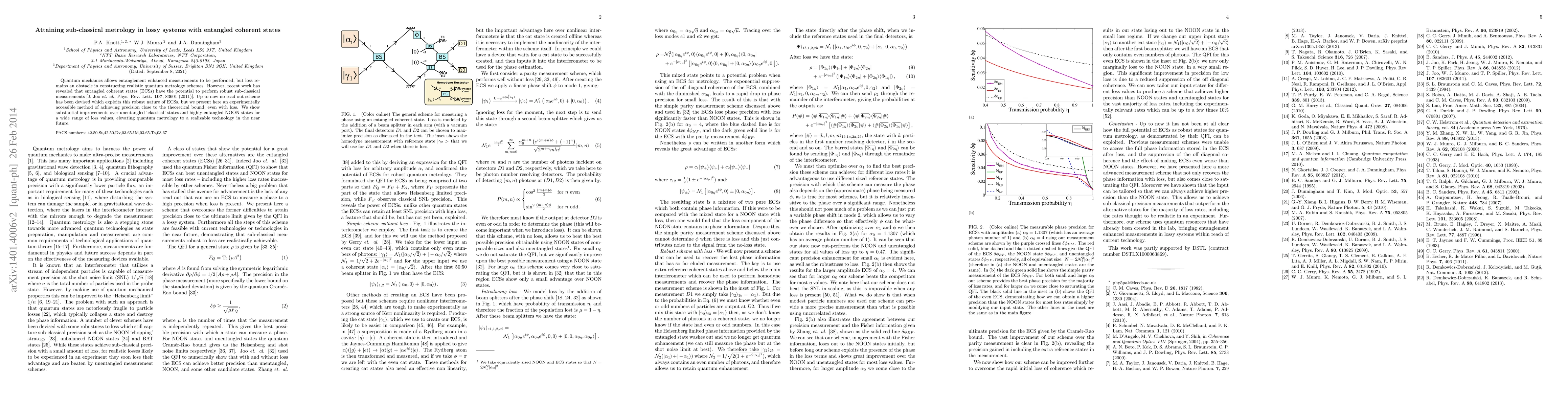 This paper presents an experimentally viable method for achieving sub-classical metrology precision using entangled coherent states (ECSs) in lossy systems, demonstrating significant improvements over classical and highly-entangled NOON states. This advancement brings quantum metrology closer to practical application despite losses.