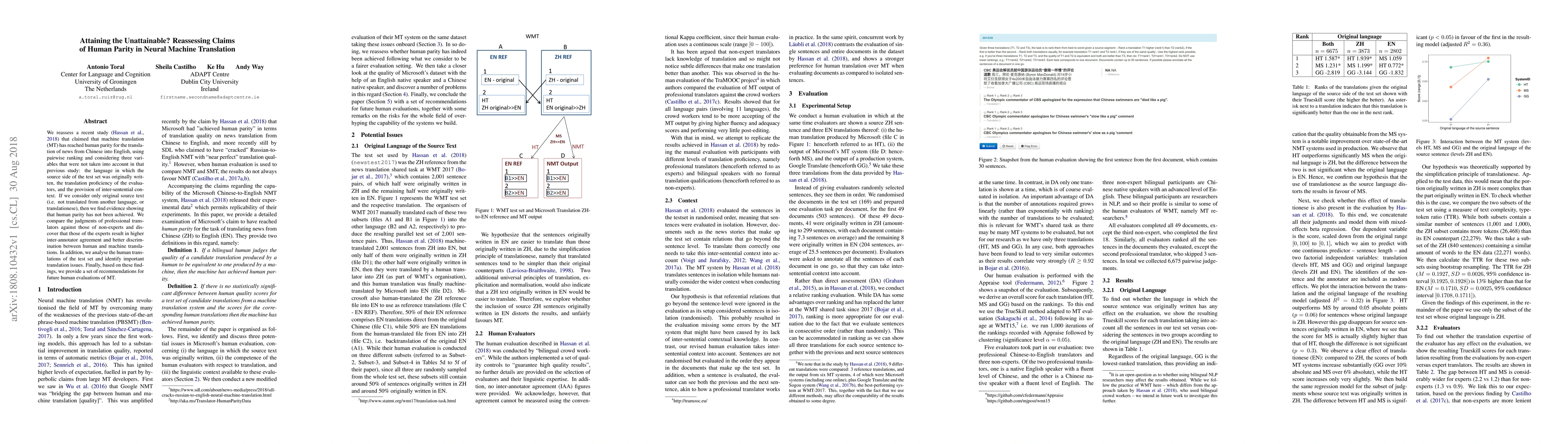 We reassess a recent study (Hassan et al., 2018) that claimed that machine translation (MT) has reached human parity for the translation of news from Chinese into English, using pairwise ranking and considering three variables that were not taken into account in that previous study: the language in which the source side of the test set was originally written, the translation proficiency of the evaluators, and the provision of inter-sentential context. If we consider only original source text (i.e. not translated from another language, or translationese), then we find evidence showing that human parity has not been achieved. We compare the judgments of professional translators against those of non-experts and discover that those of the experts result in higher inter-annotator agreement and better discrimination between human and machine translations. In addition, we analyse the human translations of the test set and identify important translation issues. Finally, based on these findings, we provide a set of recommendations for future human evaluations of MT.