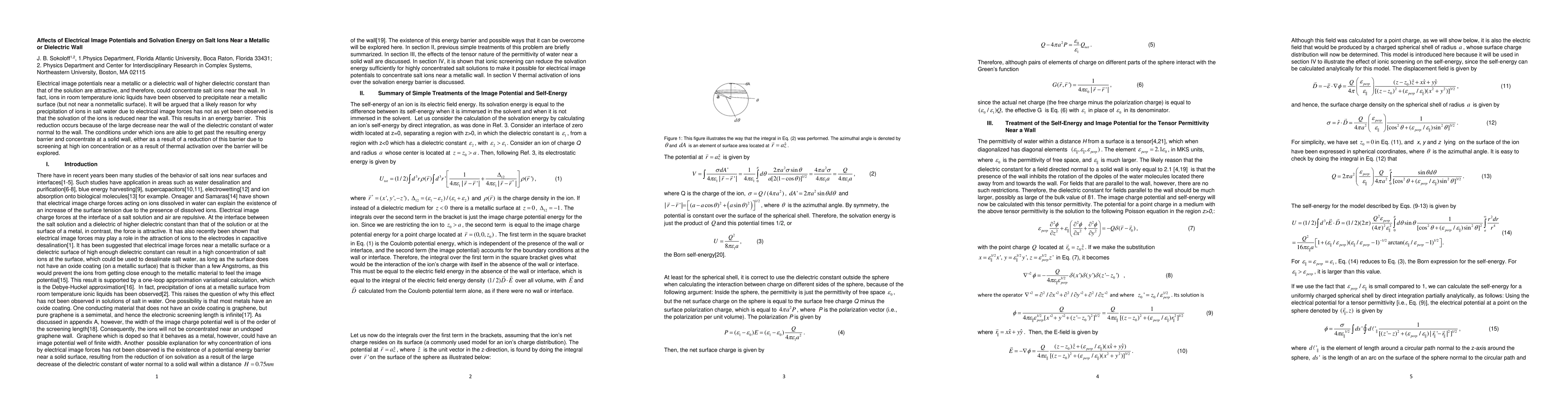 Electrical image potentials near a metallic or a dielectric wall of higher dielectric constant than that of the solution are attractive, and therefore, can concentrate salt ions near the wall. It has recently been observed that near a metallic surface, ions in room temperature ionic liquids precipitate (but not near a nonmetallic surface). It will be argued that a likely reason for why precipitation of ions in salt water, as a result of electrical image forces, has not as yet been observed is the existence of an energy barrier near a solid surface, resulting from the decrease of ion solvation as a result of the large decrease of the dielectric constant of water normal to a solid wall within a short distance from the wall. We will explore the conditions under which ions are able to get past this barrier and concentrate at a solid wall, either as a result of a reduction of this barrier caused by screening at high ion concentration or as a result of thermal activation over this solvation energy potential barrier.