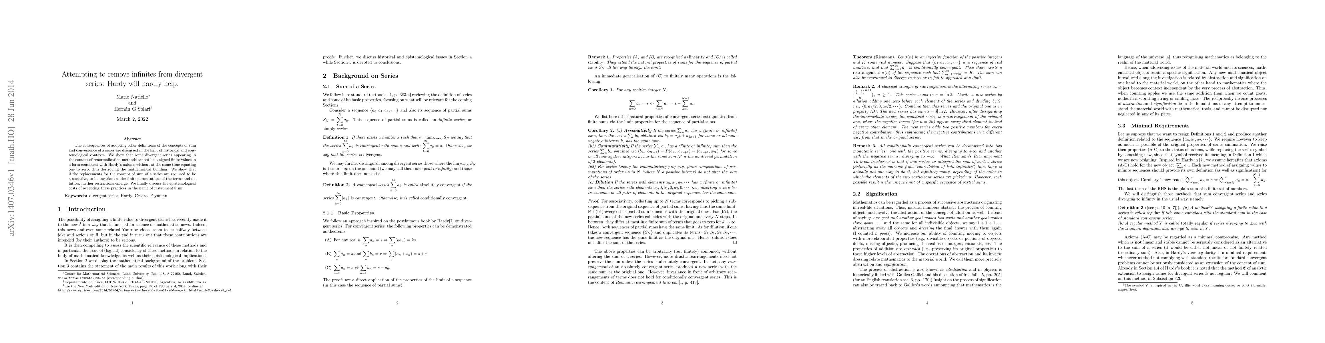 The consequences of adopting other definitions of the concepts of sum and convergence of a series are discussed in the light of historical and epistemological contexts. We show that some divergent series appearing in the context of renormalization methods cannot be assigned finite values in a form consistent with Hardy's axioms without at the same time equating one to zero, thus destroying the mathematical building. We show that if the replacements for the concept of sum of a series are required to be associative, to be invariant under finite permutations of the terms and dilution, further restrictions emerge. We finally discuss the epistemological costs of accepting these practices in the name of instrumentalism.