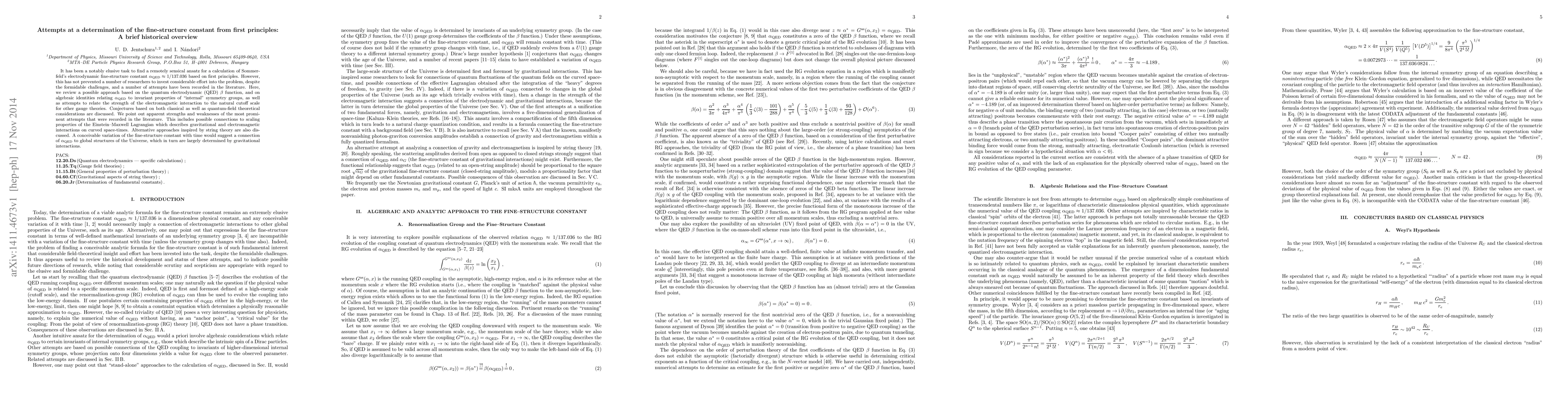 This paper provides a historical overview of attempts to calculate the fine-structure constant (alpha_QED ~ 1/137.036) from first principles using quantum electrodynamics (QED) beta function and symmetry group properties. It discusses strengths and weaknesses of these methods, including connections to Einstein-Maxwell Lagrangian and string theory-inspired approaches. The paper also explores the possibility of a time-varying fine-structure constant and its implications for global universe structures.