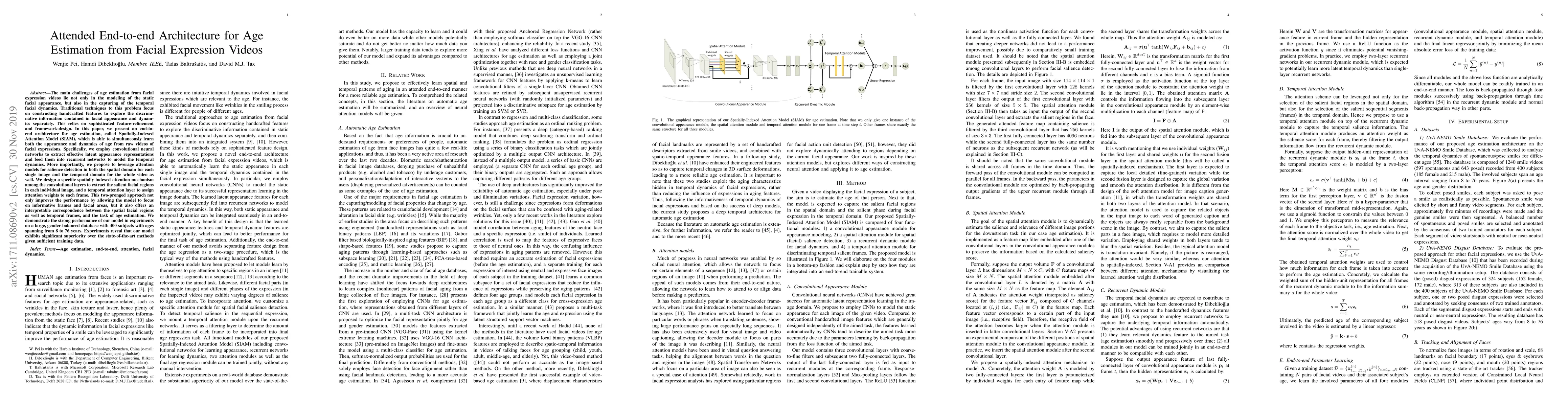 The paper introduces an end-to-end architecture, SIAM, which integrates convolutional and recurrent networks with spatial and temporal attention mechanisms for age estimation from facial expression videos.
