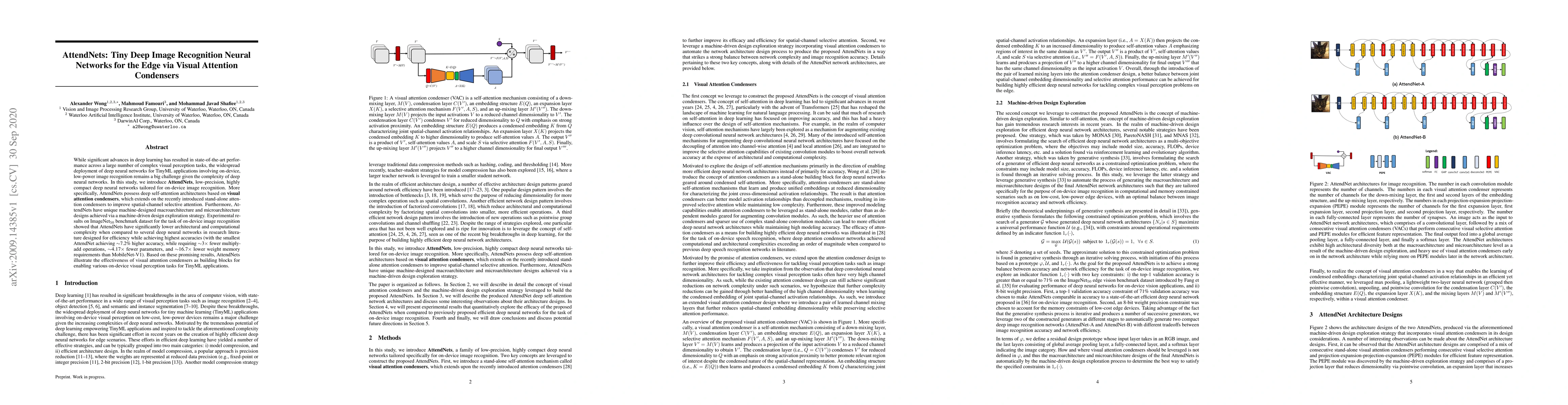 AttendNets are low-precision, compact neural networks designed for efficient on-device image recognition, utilizing visual attention condensers for improved spatial-channel selective attention. Experimental results show AttendNets achieve higher accuracy with significantly lower computational complexity compared to existing efficient networks like MobileNet-V1.