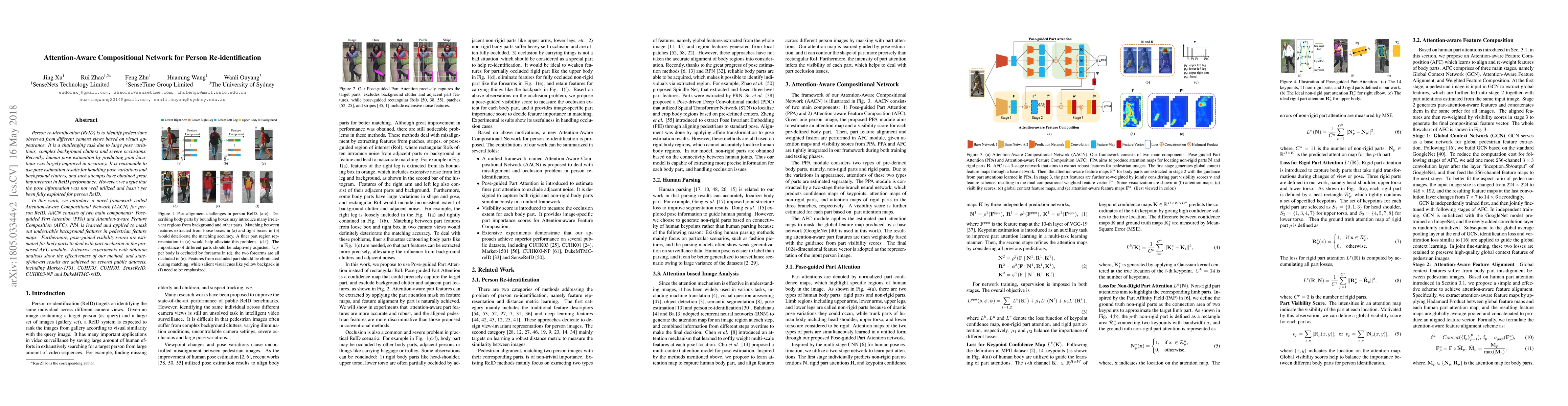 The paper proposes an Attention-Aware Compositional Network (AACN) for person re-identification, utilizing pose-guided part attention to mask background features and attention-aware feature composition to handle occlusions, achieving state-of-the-art results on multiple datasets.