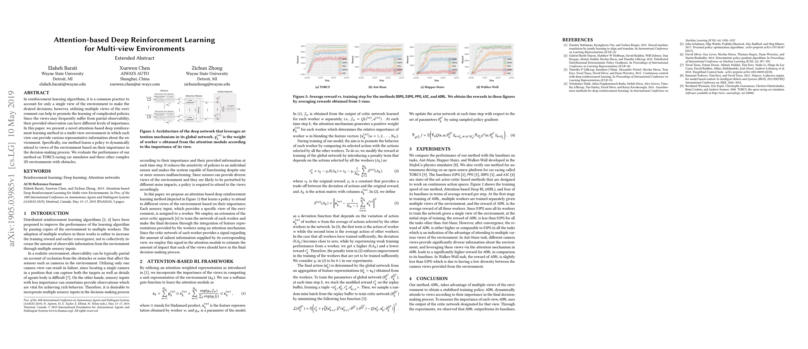 This paper proposes an attention-based deep reinforcement learning method to enhance policy learning in multi-view environments, where different views provide varying levels of importance. The method dynamically prioritizes views based on their relevance, improving decision-making, and is evaluated on a racing car simulator and three complex 3D environments.