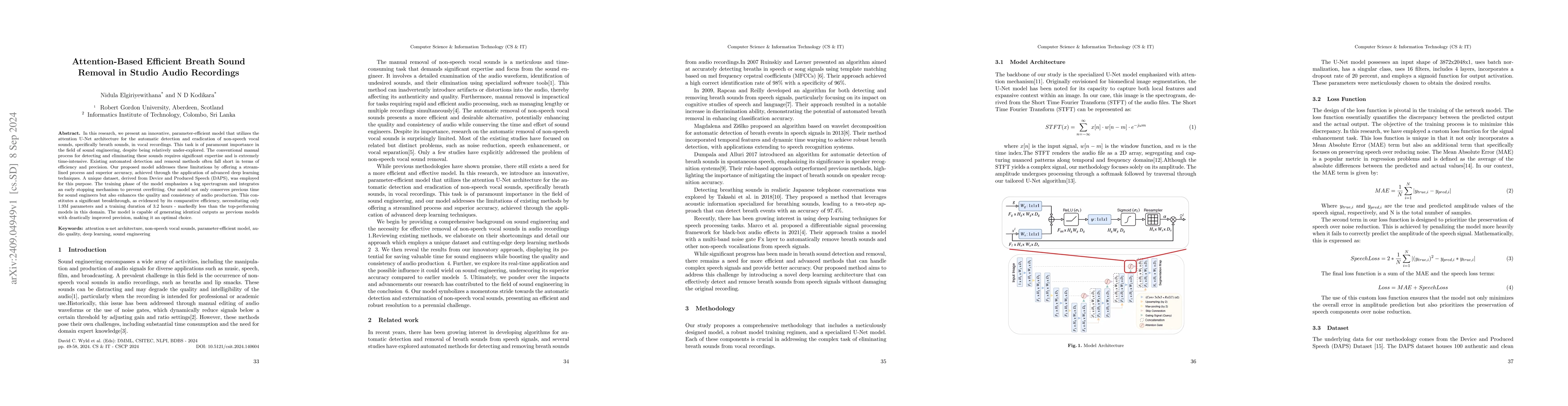 In this research, we present an innovative, parameter-efficient model that utilizes the attention U-Net architecture for the automatic detection and eradication of non-speech vocal sounds, specifically breath sounds, in vocal recordings. This task is of paramount importance in the field of sound engineering, despite being relatively under-explored. The conventional manual process for detecting and eliminating these sounds requires significant expertise and is extremely time-intensive. Existing automated detection and removal methods often fall short in terms of efficiency and precision. Our proposed model addresses these limitations by offering a streamlined process and superior accuracy, achieved through the application of advanced deep learning techniques. A unique dataset, derived from Device and Produced Speech (DAPS), was employed for this purpose. The training phase of the model emphasizes a log spectrogram and integrates an early stopping mechanism to prevent overfitting. Our model not only conserves precious time for sound engineers but also enhances the quality and consistency of audio production. This constitutes a significant breakthrough, as evidenced by its comparative efficiency, necessitating only 1.9M parameters and a training duration of 3.2 hours - markedly less than the top-performing models in this domain. The model is capable of generating identical outputs as previous models with drastically improved precision, making it an optimal choice.
