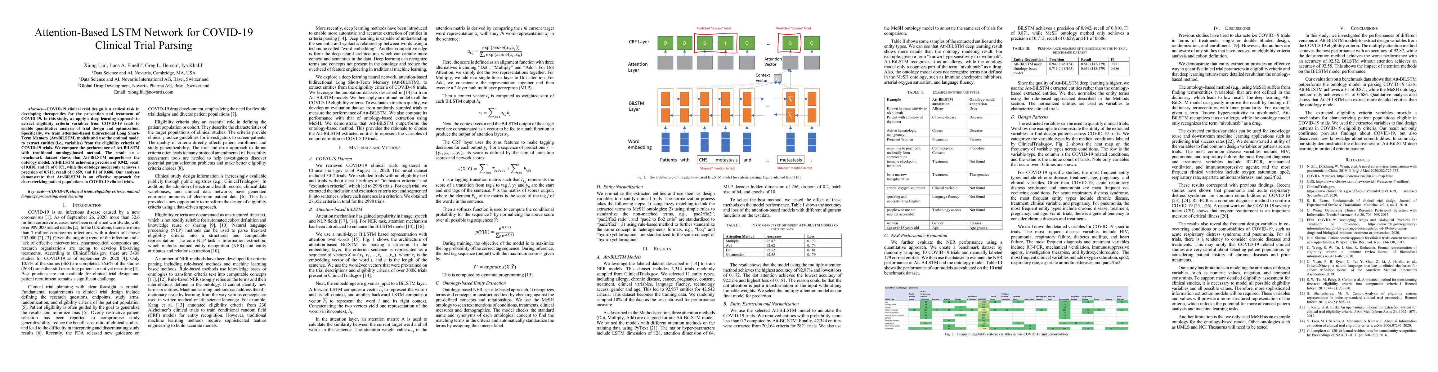 This study employs an attention-based bidirectional LSTM (Att-BiLSTM) model to extract eligibility criteria from COVID-19 clinical trials, achieving superior performance compared to traditional ontology-based methods, with precision, recall, and F1 scores of 0.942, 0.810, and 0.871 respectively.