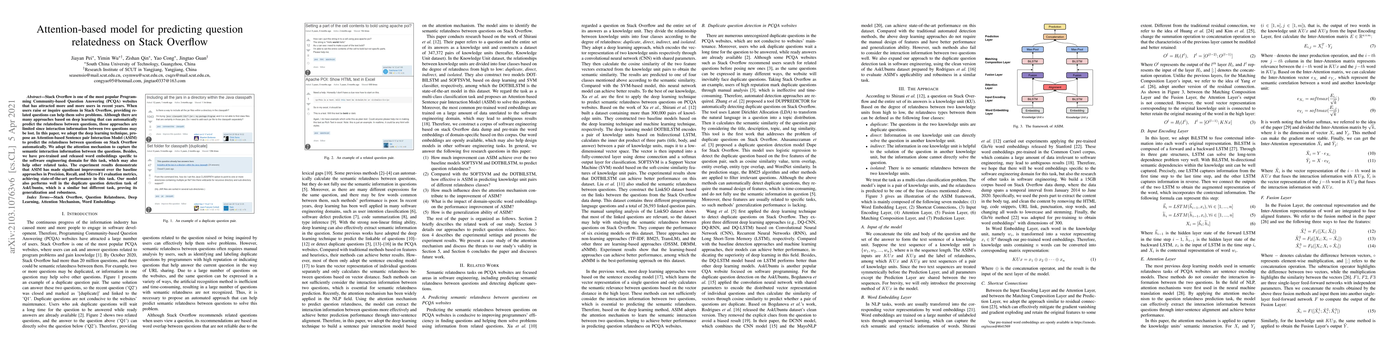 Researchers developed an Attention-based model to predict relatedness between questions on Stack Overflow, achieving state-of-the-art performance with significant improvement over baseline approaches.