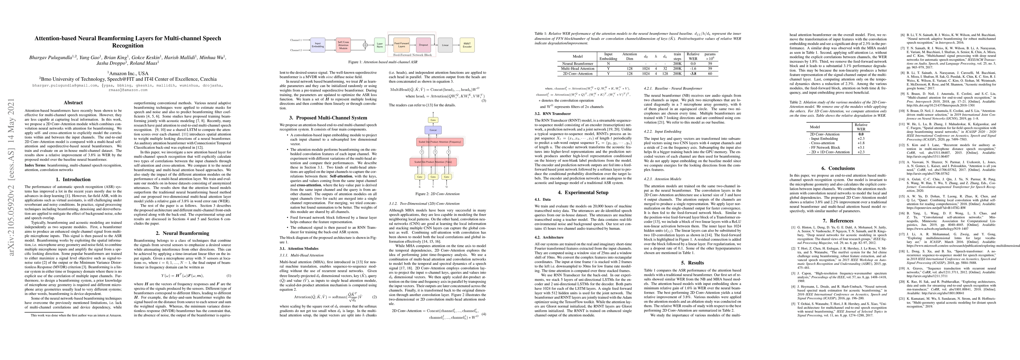 This paper proposes a 2D Conv-Attention module for multi-channel speech recognition, combining CNNs with attention to capture local information and channel correlations. The model shows a 3.8% relative improvement in Word Error Rate (WER) compared to baseline neural beamformers.