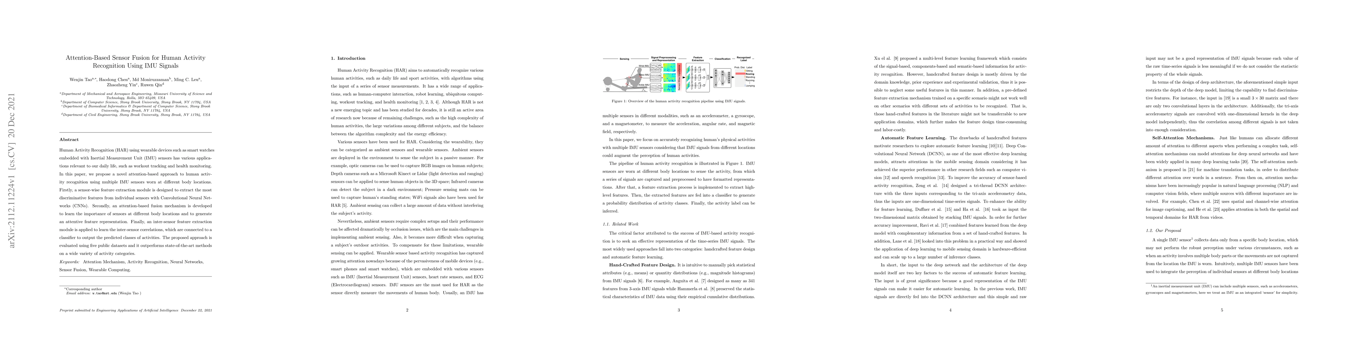 This paper proposes an attention-based method for human activity recognition using IMU sensors from multiple body locations. It employs CNNs for sensor-wise feature extraction and an attention mechanism for sensor fusion, followed by inter-sensor feature extraction and classification, achieving superior performance on public datasets.