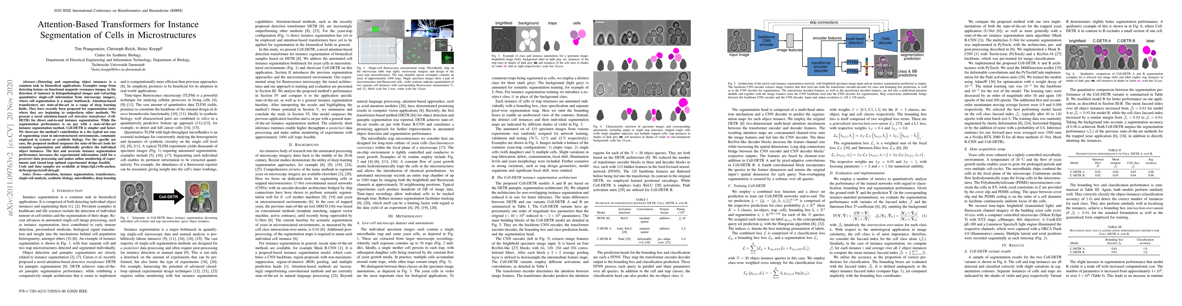 This research is significant as it presents Cell-DETR, a transformer-based method for instance segmentation in biomedical imaging, which is simpler, faster, and performs comparably to Mask R-CNN. Its application in microfluidic systems or synthetic biology showcases its potential for high-content quantitative single-cell TLFM, reducing measurement uncertainty, and increasing biological insights.