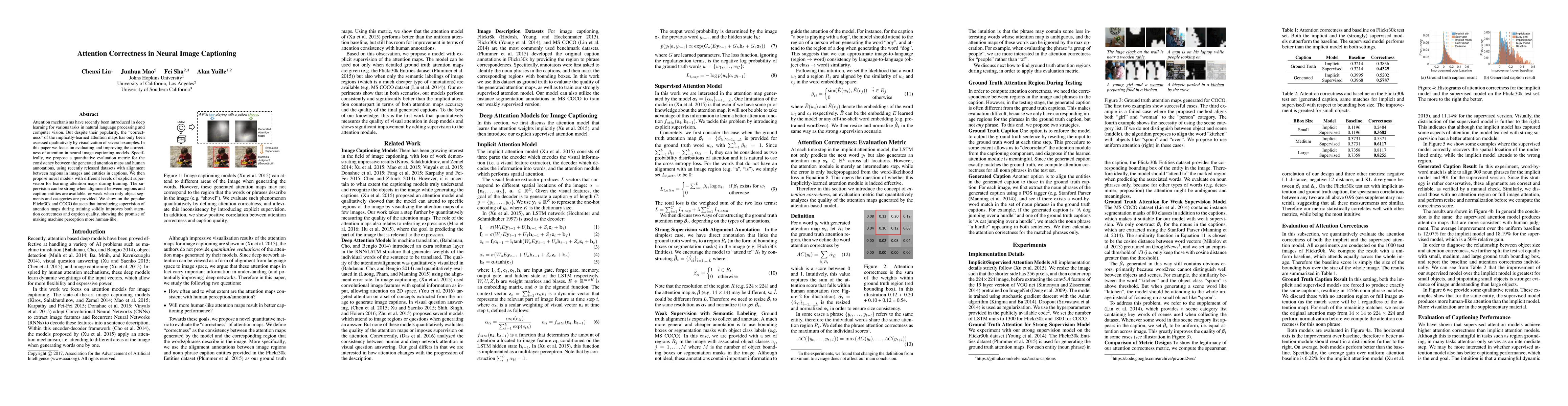 This paper proposes a quantitative metric to evaluate the correctness of attention maps in neural image captioning models and introduces supervised training methods to improve attention alignment with human annotations. The study demonstrates that incorporating attention supervision during training enhances both attention accuracy and caption quality on Flickr30k and COCO datasets.