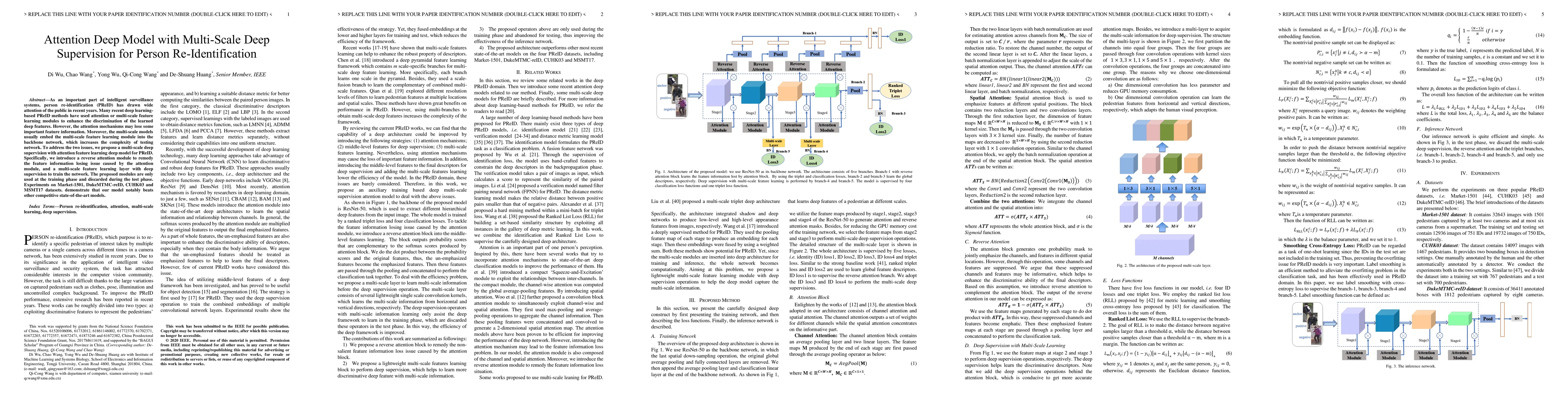 In recent years, person re-identification (PReID) has become a hot topic in computer vision duo to it is an important part in intelligent surveillance. Many state-of-the-art PReID methods are attention-based or multi-scale feature learning deep models. However, introducing attention mechanism may lead to some important feature information losing issue. Besides, most of the multi-scale models embedding the multi-scale feature learning block into the feature extraction deep network, which reduces the efficiency of inference network. To address these issue, in this study, we introduce an attention deep architecture with multi-scale deep supervision for PReID. Technically, we contribute a reverse attention block to complement the attention block, and a novel multi-scale layer with deep supervision operator for training the backbone network. The proposed block and operator are only used for training, and discard in test phase. Experiments have been performed on Market-1501, DukeMTMC-reID and CUHK03 datasets. All the experiment results show that the proposed model significantly outperforms the other competitive state-of-the-art methods.