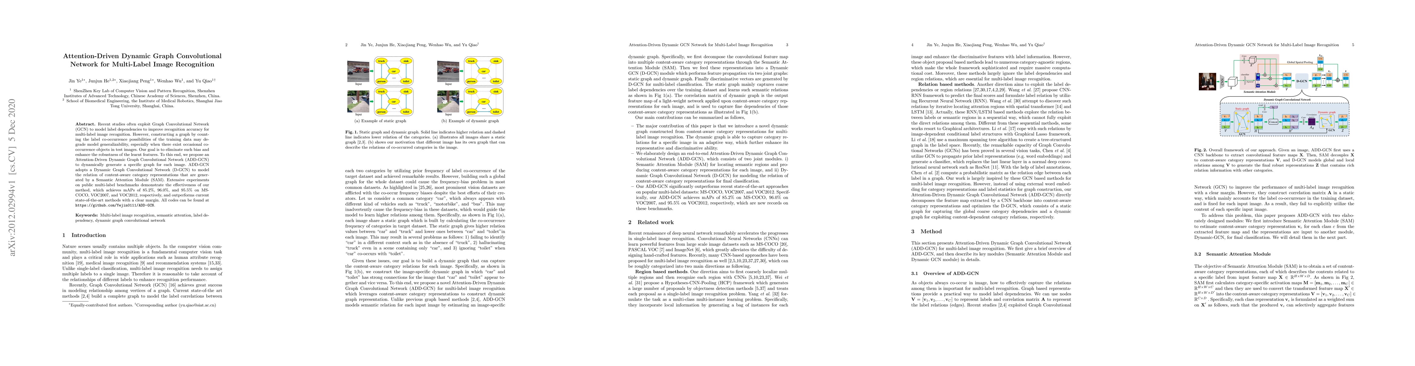 This paper proposes an Attention-Driven Dynamic Graph Convolutional Network (ADD-GCN) to improve multi-label image recognition by dynamically generating graphs for each image, thereby enhancing model robustness and generalizability. Experiments show ADD-GCN outperforms state-of-the-art methods on MS-COCO, VOC2007, and VOC2012 datasets.