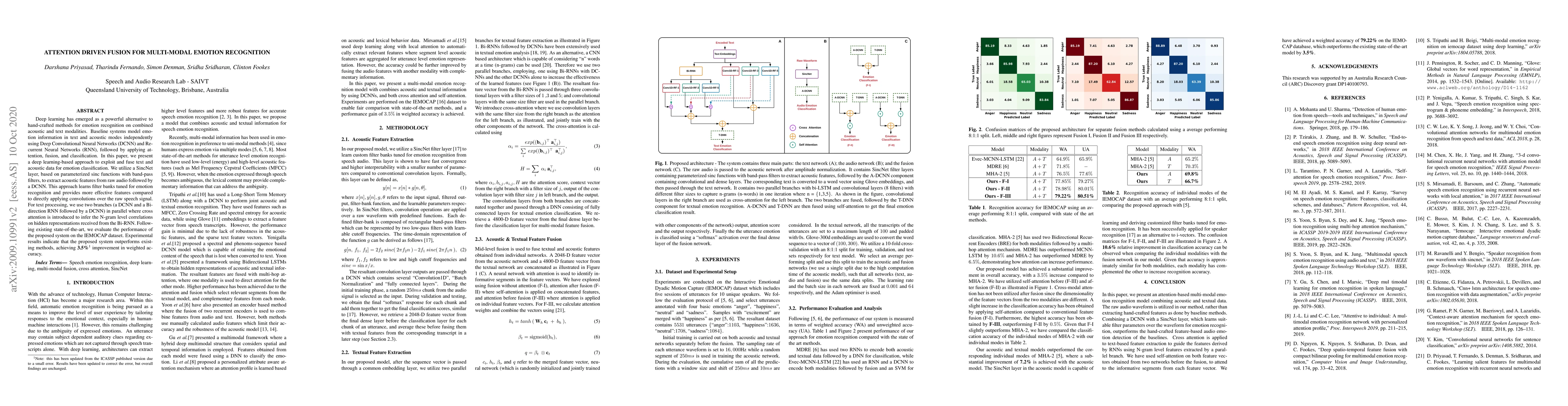 This paper proposes a deep learning approach for multi-modal emotion recognition using SincNet for acoustic feature extraction and parallel DCNN and Bi-RNN for text processing, achieving a 3.5% improvement in accuracy over existing methods on the IEMOCAP dataset.