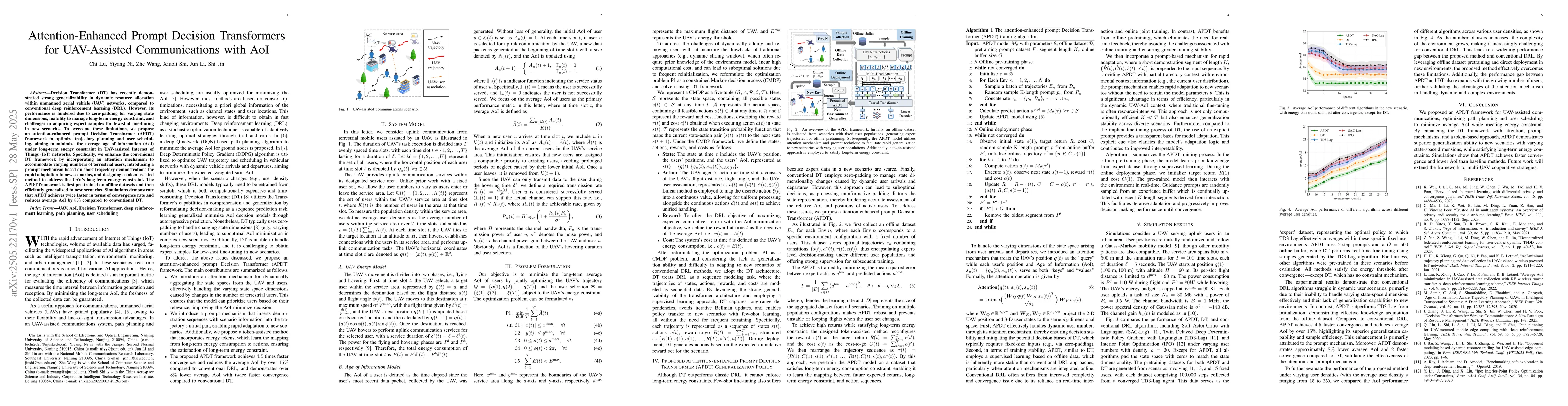 A new AI framework called Attention-Enhanced Prompt Decision Transformer (APDT) is proposed to optimize UAV communications in IoT networks, achieving faster convergence and lower average age of information.