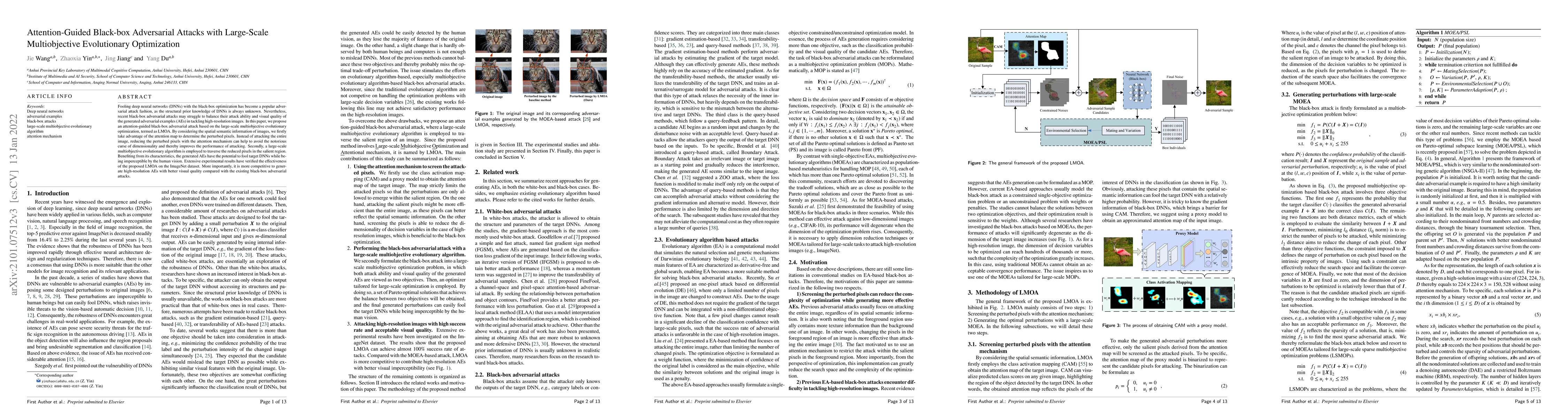 This paper proposes an attention-guided black-box adversarial attack using large-scale multiobjective evolutionary optimization (LMOA) to generate high-resolution adversarial examples that are both effective and visually imperceptible. The method leverages attention maps to focus on salient pixels, improving attack efficiency and quality.
