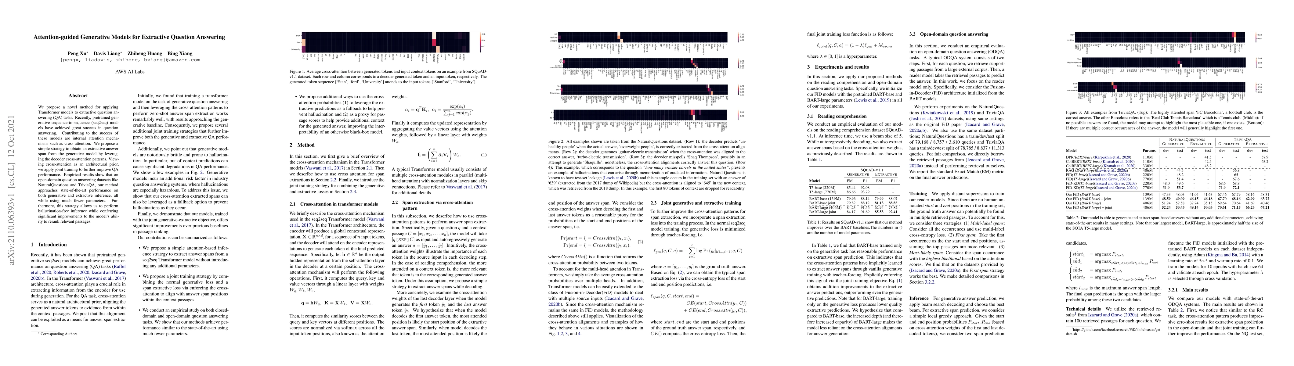 We propose a novel method for applying Transformer models to extractive question answering (QA) tasks. Recently, pretrained generative sequence-to-sequence (seq2seq) models have achieved great success in question answering. Contributing to the success of these models are internal attention mechanisms such as cross-attention. We propose a simple strategy to obtain an extractive answer span from the generative model by leveraging the decoder cross-attention patterns. Viewing cross-attention as an architectural prior, we apply joint training to further improve QA performance. Empirical results show that on open-domain question answering datasets like NaturalQuestions and TriviaQA, our method approaches state-of-the-art performance on both generative and extractive inference, all while using much fewer parameters. Furthermore, this strategy allows us to perform hallucination-free inference while conferring significant improvements to the model's ability to rerank relevant passages.