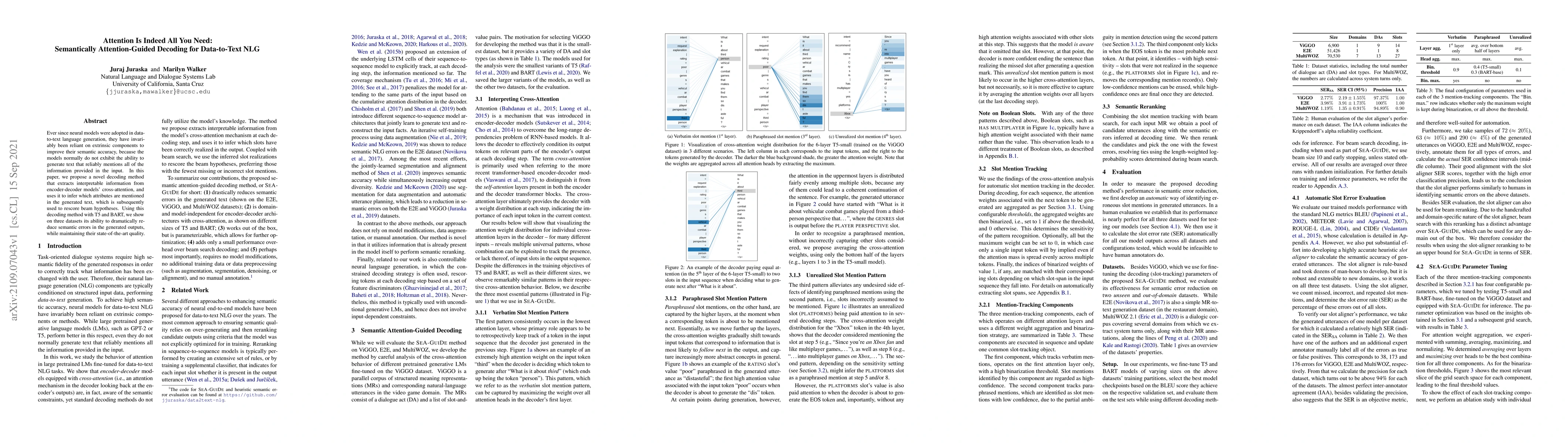 This paper introduces a semantically attention-guided decoding method to enhance data-to-text language generation, significantly reducing semantic errors without compromising output quality. The method leverages cross-attention from encoder-decoder models to infer mentioned attributes, which are then used to rescore beam hypotheses.