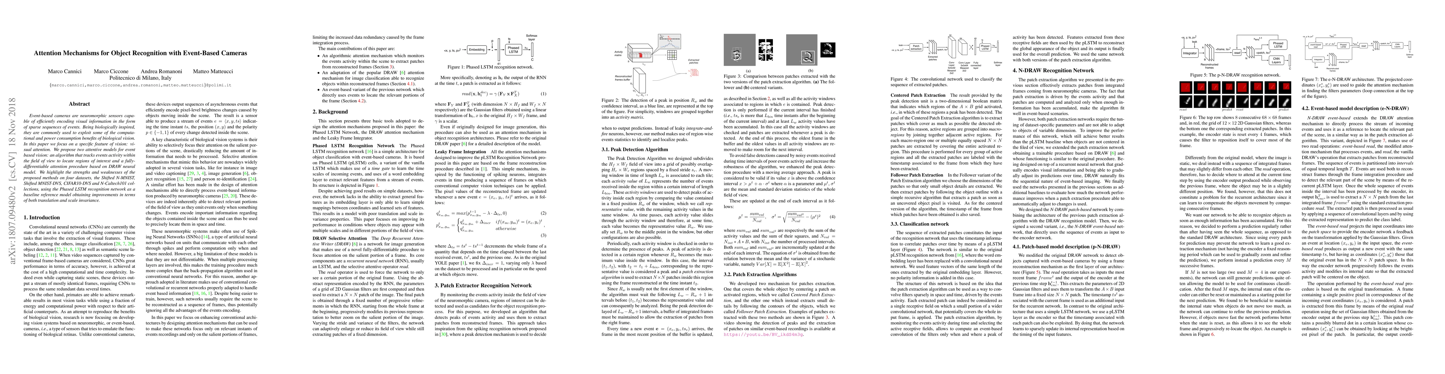 Researchers developed two attention mechanisms for object recognition using event-based cameras, improving translation and scale invariance on four datasets.