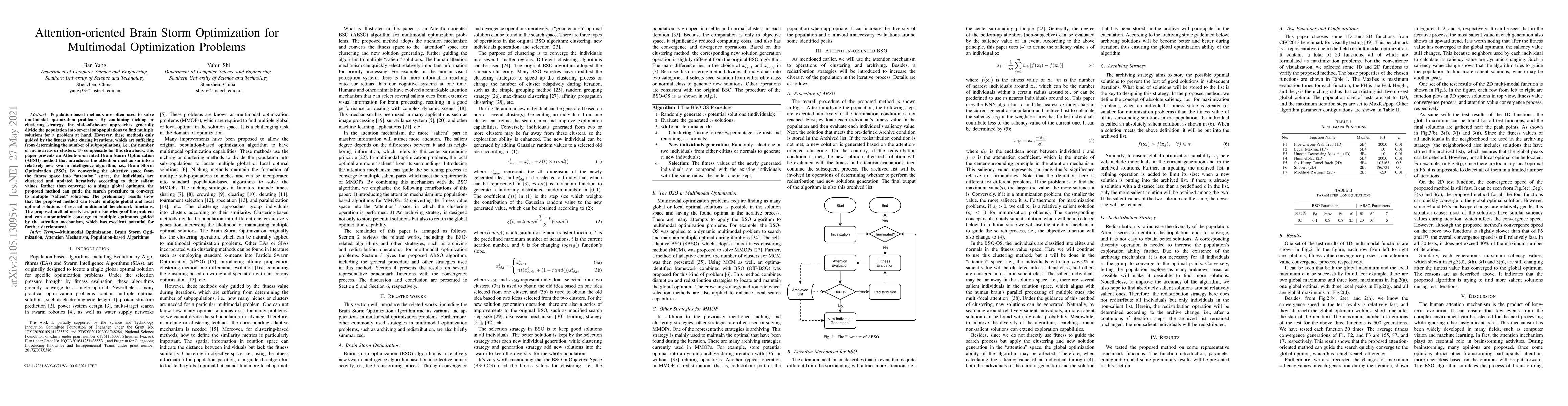 The paper introduces the Attention-oriented Brain Storm Optimization (ABSO) method to address multimodal optimization problems by incorporating an attention mechanism into Brain Storm Optimization. ABSO clusters individuals based on salient values rather than fitness values, enabling it to locate multiple global and local optima without requiring prior knowledge of the problem.