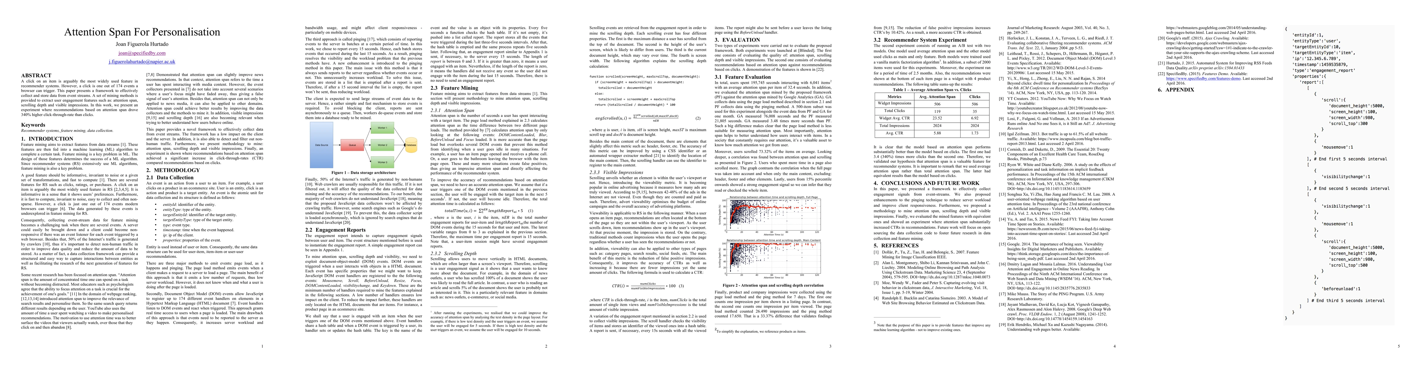 A click on an item is arguably the most widely used feature in recommender systems. However, a click is one out of 174 events a browser can trigger. This paper presents a framework to effectively collect and store data from event streams. A set of mining methods is provided to extract user engagement features such as: attention span, scrolling depth and visible impressions. In this work, we present an experiment where recommendations based on attention span drove 340% higher click-through-rate than clicks.