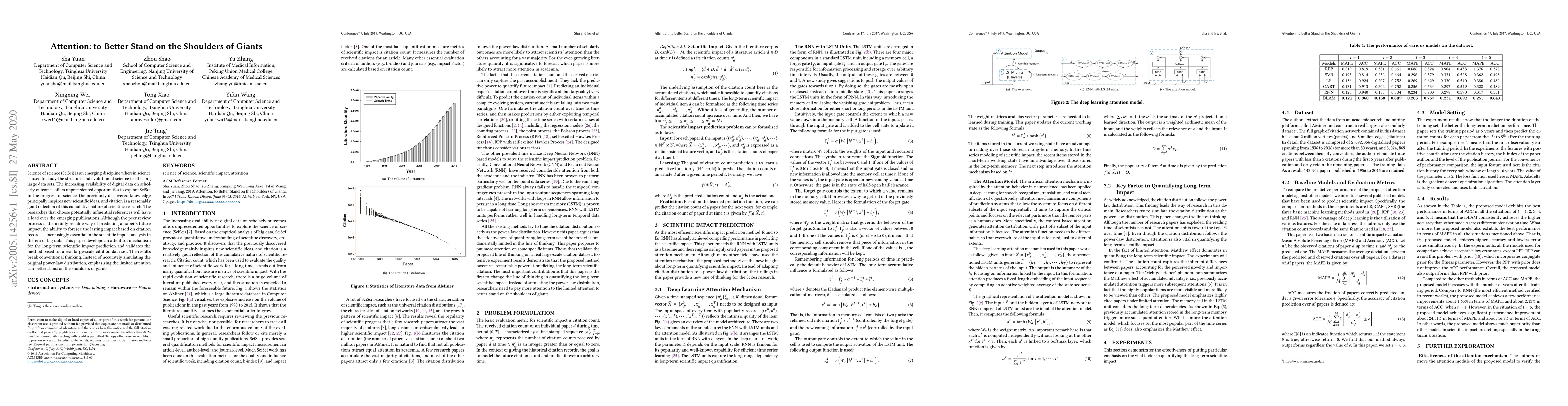Science of science (SciSci) is an emerging discipline wherein science is used to study the structure and evolution of science itself using large data sets. The increasing availability of digital data on scholarly outcomes offers unprecedented opportunities to explore SciSci. In the progress of science, the previously discovered knowledge principally inspires new scientific ideas, and citation is a reasonably good reflection of this cumulative nature of scientific research. The researches that choose potentially influential references will have a lead over the emerging publications. Although the peer review process is the mainly reliable way of predicting a paper's future impact, the ability to foresee the lasting impact based on citation records is increasingly essential in the scientific impact analysis in the era of big data. This paper develops an attention mechanism for the long-term scientific impact prediction and validates the method based on a real large-scale citation data set. The results break conventional thinking. Instead of accurately simulating the original power-law distribution, emphasizing the limited attention can better stand on the shoulders of giants.