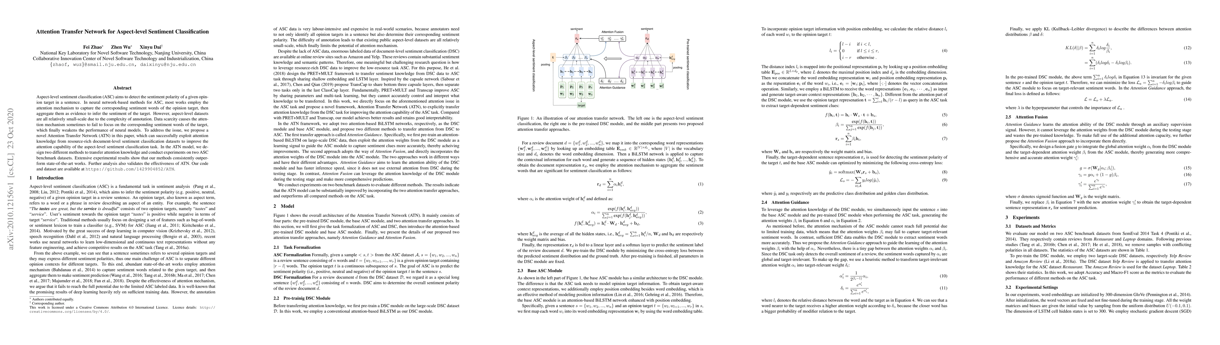The paper proposes an Attention Transfer Network (ATN) to enhance aspect-level sentiment classification by leveraging attention knowledge from larger, resource-rich document-level sentiment datasets. The ATN model achieves better performance on small-scale aspect-level datasets by transferring attention knowledge, outperforming state-of-the-art methods in experiments.
