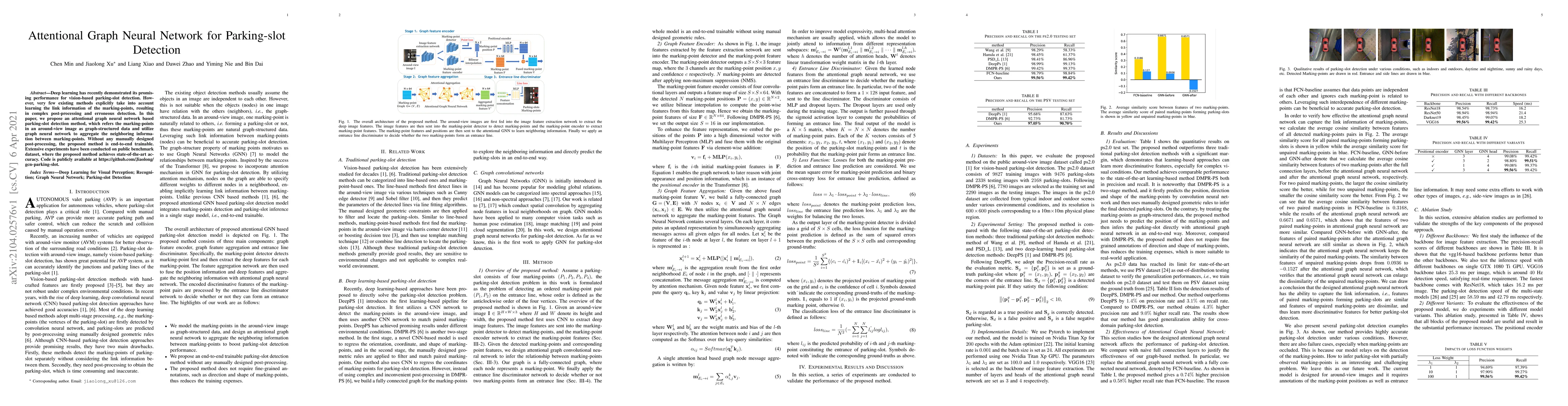 This paper proposes an attentional graph neural network for vision-based parking-slot detection, leveraging graph-structured data to capture relationships between marking-points, resulting in improved accuracy without complex post-processing. The method achieves state-of-the-art performance on benchmark datasets.