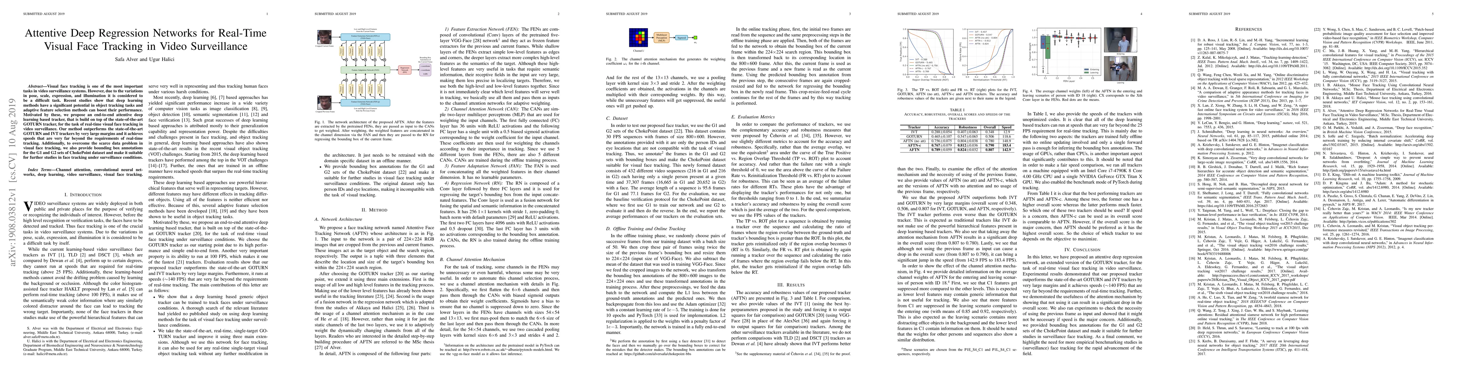 The paper proposes an Attentive Deep Regression Network (AFTN), an extension of the GOTURN tracker, for real-time visual face tracking in video surveillance. The method uses low and high-level features from previous and current frames, a fusion network in the regression network, and a channel attention mechanism for adaptive feature weighting.