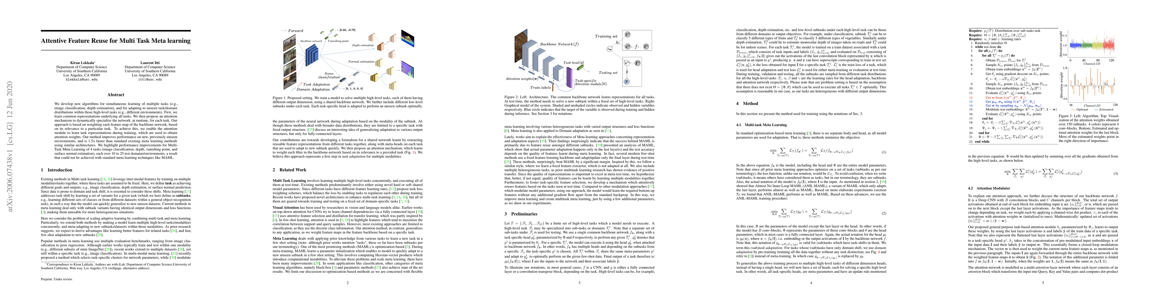 This paper introduces algorithms for multi-task meta learning, utilizing an attention mechanism to dynamically specialize network features for different tasks. The method improves performance on unseen environments and is significantly faster than existing meta learning techniques.