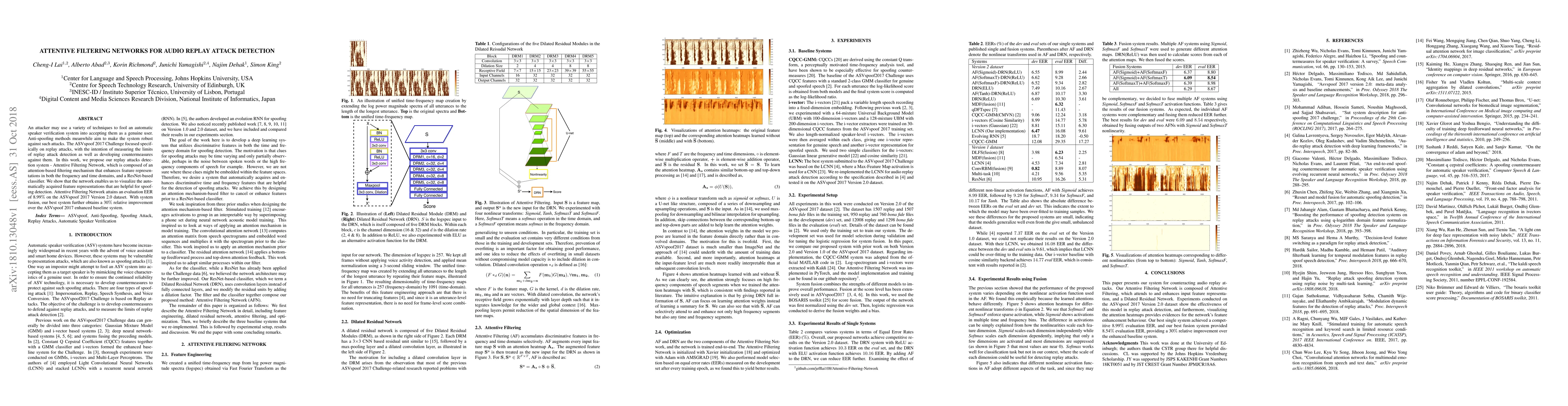 This research proposes an Attentive Filtering Network for detecting audio replay attacks, achieving an EER of 8.99% on the ASVspoof 2017 dataset, with a 30% relative improvement over the baseline system through system fusion.