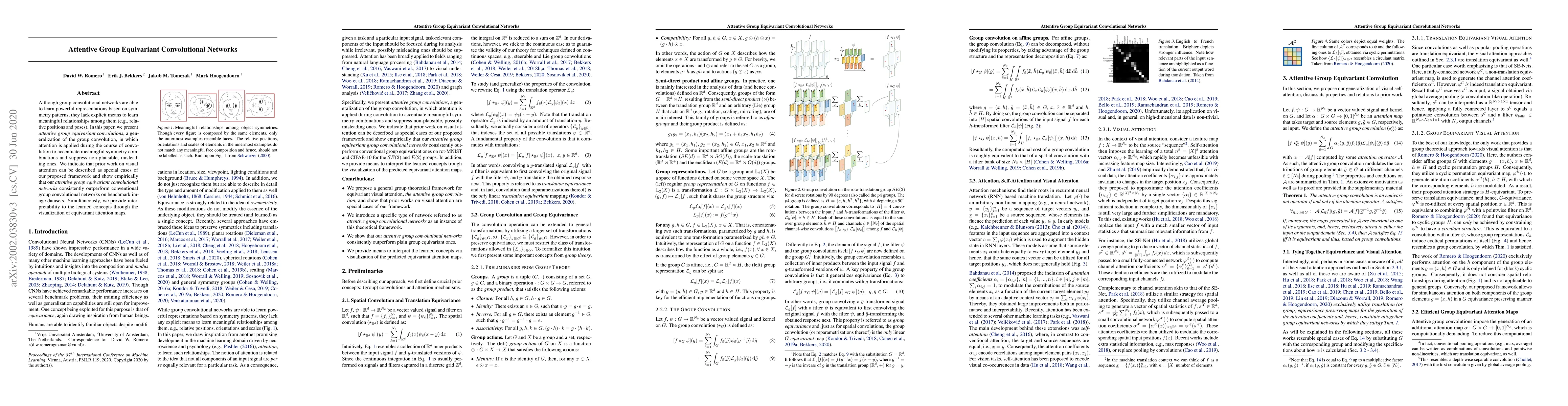 A novel approach to equivariant attention maps is presented, combining group convolutions with spatial max-pooling.