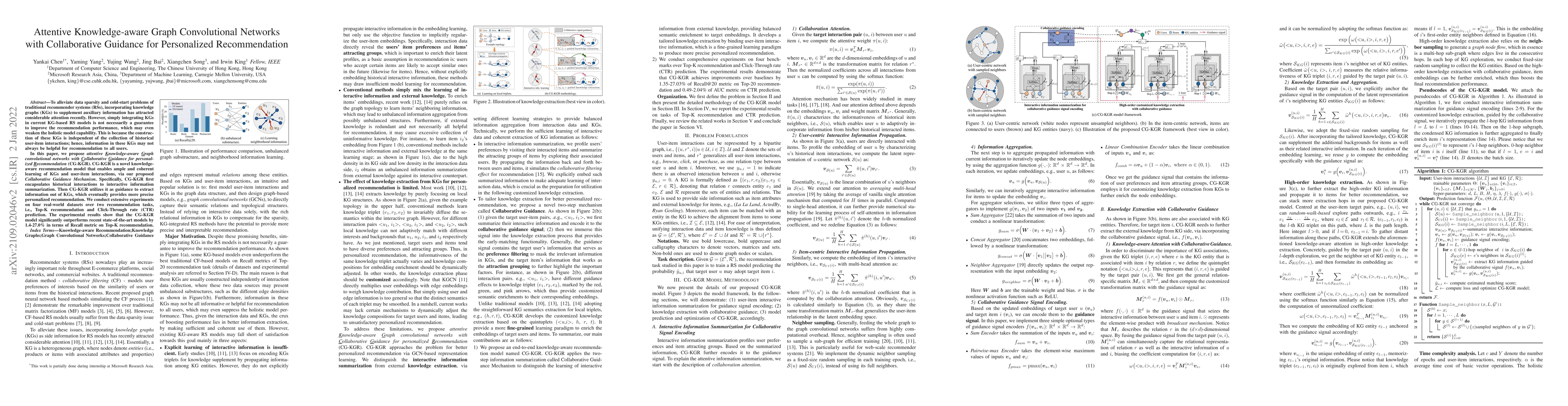 This paper introduces CG-KGR, an attentive knowledge-aware graph convolutional network with a Collaborative Guidance Mechanism to address data sparsity and cold-start issues in recommender systems by effectively integrating knowledge graphs with user-item interactions for improved personalized recommendations. Experimental results show CG-KGR significantly outperforms existing models in Top-K recommendation tasks.