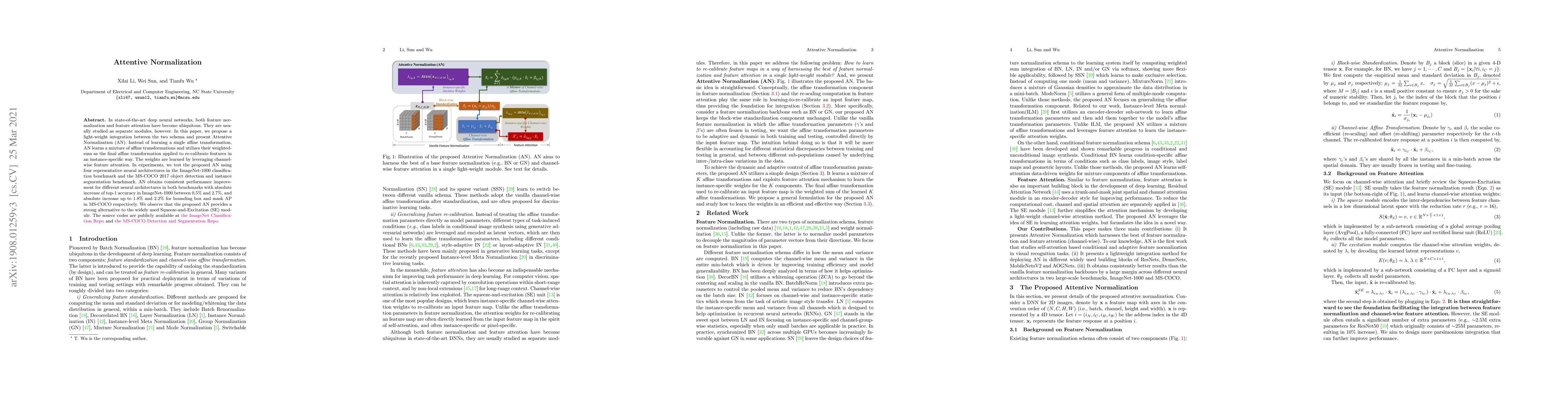 Researchers propose Attentive Normalization, a lightweight integration of feature normalization and attention that improves performance in deep neural networks on ImageNet-1000 classification and MS-COCO object detection and instance segmentation tasks.