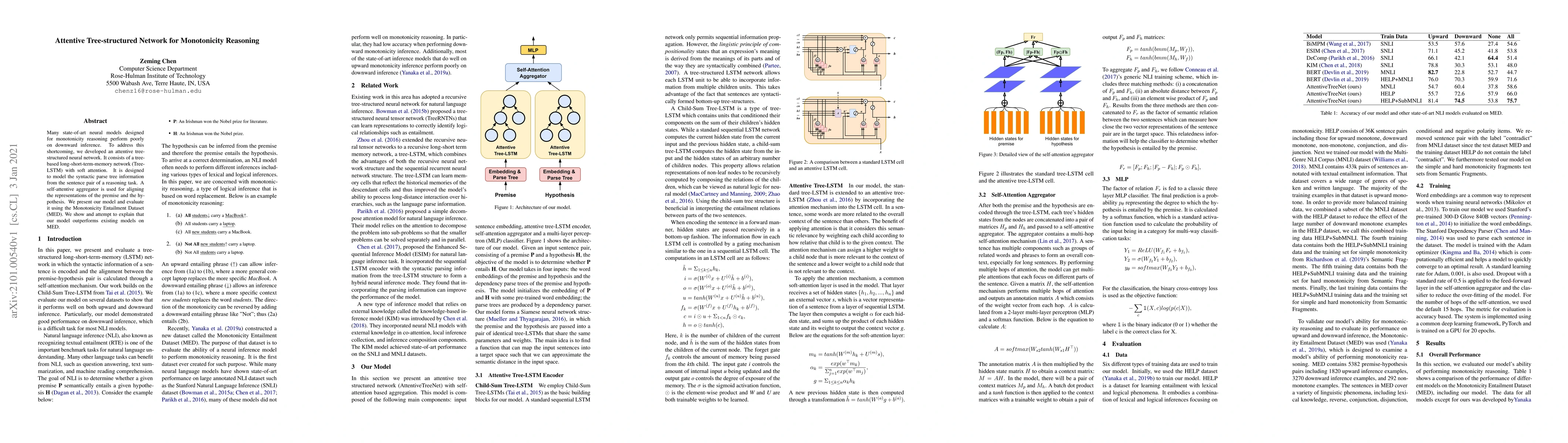 This research proposes an attentive tree-structured neural network, incorporating a Tree-LSTM with soft attention, to enhance monotonicity reasoning, especially for downward inference. The model uses a self-attentive aggregator to align premise and hypothesis representations, achieving superior performance on the Monotonicity Entailment Dataset compared to existing models.
