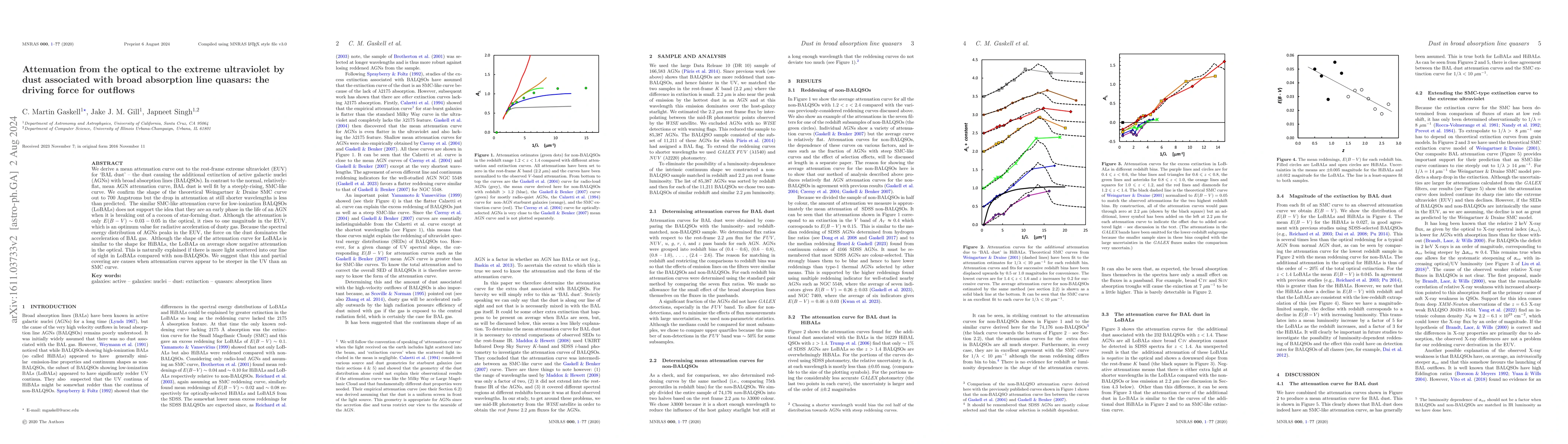 We use mid-IR to UV observations to derive a mean attenuation curve out to the rest-frame extreme ultraviolet (EUV) for "BAL dust" -- the dust causing the additional extinction of active galactic nuclei (AGNs) with broad absorption lines (BALQSOs). In contrast to the normal, relatively flat, mean AGN attenuation curve, BAL dust is well fit by a steeply rising, SMC-like curve. We confirm the shape of the theoretical Weingartner & Draine SMC curve out to 700 \AA, but the drop in attenuation at still shorter wavelengths is less than predicted. The identical attenuation curve for low-ionization BALQSOs (LoBALs) does not support them being a "break out" phase in the life of AGNs. Although attenuation in the optical due to BAL dust is low ($E(B-V) \sim 0.03 - 0.05$), the attenuation rises to one magnitude in the EUV because of the steep extinction curve. Here the dust optical depth is at the optimum value for radiative acceleration of dusty gas. Because the spectral energy distribution of AGNs peaks in the EUV where the optical depth is highest, the force on the dust dominates the acceleration of BAL gas. For LoBALs we get a negative attenuation curve in the optical. This is naturally explained if there is more light scattered into our line of sight in LoBALs compared with non-BALQSOs. We suggest that this and partial covering are causes when attenuation curves appear to be steeper in the UV that an SMC curve.