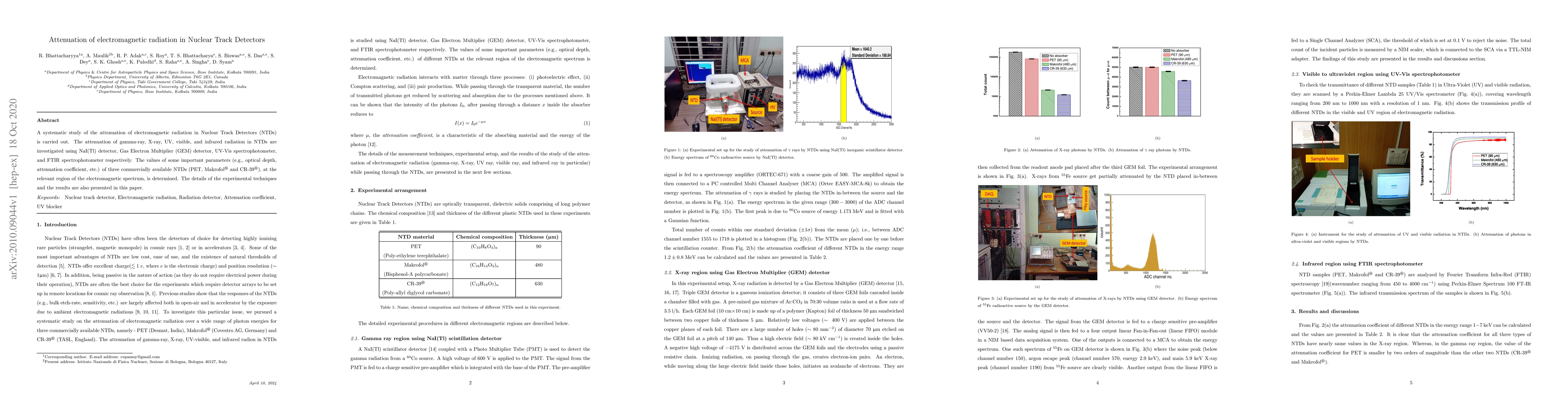 This research systematically investigates the attenuation of gamma-rays, X-rays, UV, visible, and infrared radiation in Nuclear Track Detectors (NTDs) using various detection methods. Key parameters like optical depth and attenuation coefficient are determined for three commercial NTDs: PET, Makrofol, and CR-39.