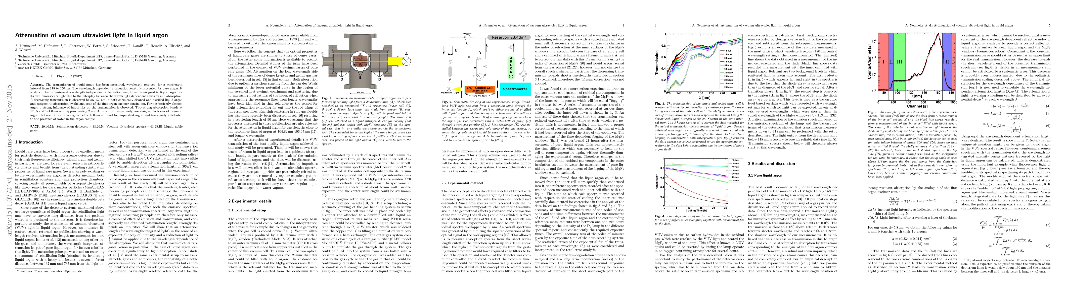 Researchers measured transmission of liquid argon for 118-250 nm wavelengths, finding that impurities like xenon can cause absorption bands and affect transparency. A broad absorption region below 180 nm is attributed to water presence in the sample.